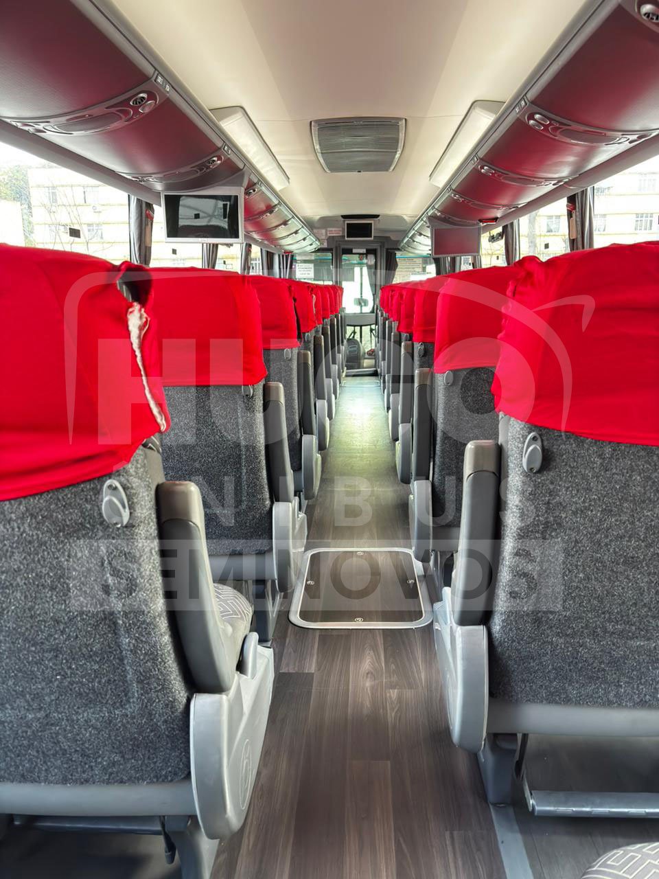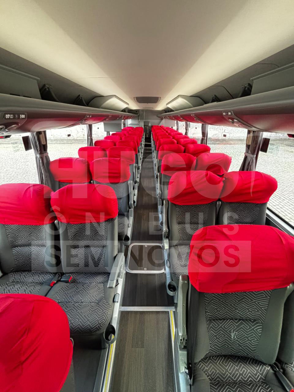 Poltronas Soft com apoio para pernas / WC / Frigobar / Ar-condicionado / Telas de DVD / USB nas poltronas